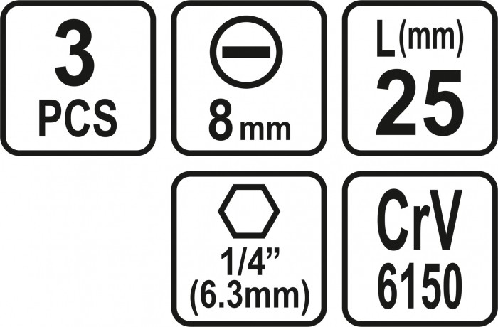 BITY 1/4"X25 MM, 8MM 3 SZT