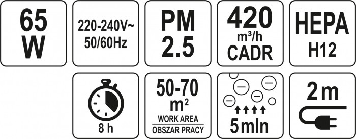 OCZYSZCZACZ POWIETRZA 65W, 420M3/H