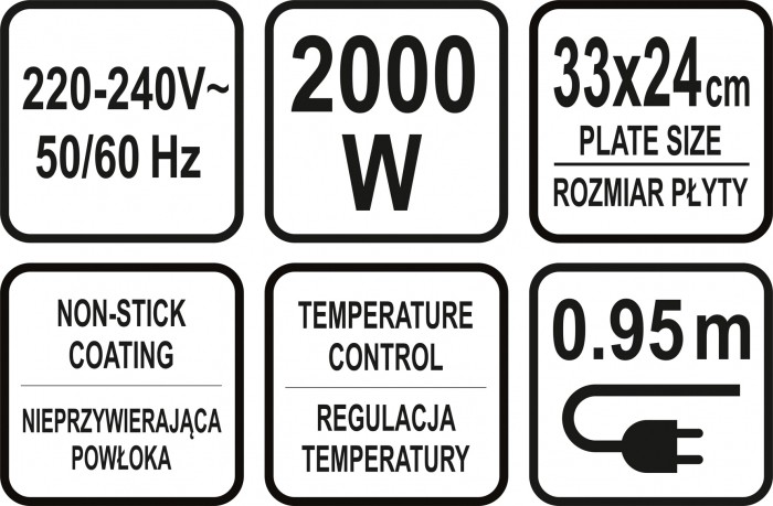 GRILL ELEKTRYCZNY 2000W, 33X24CM