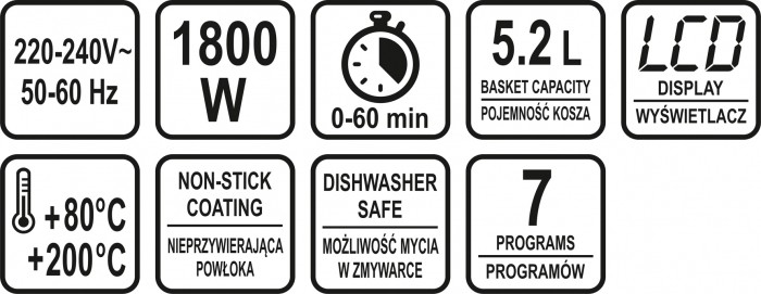FRYTKOWNICA BEZTŁUSZCZOWA 5,2L 1800W LED -zdjęcie numer 11