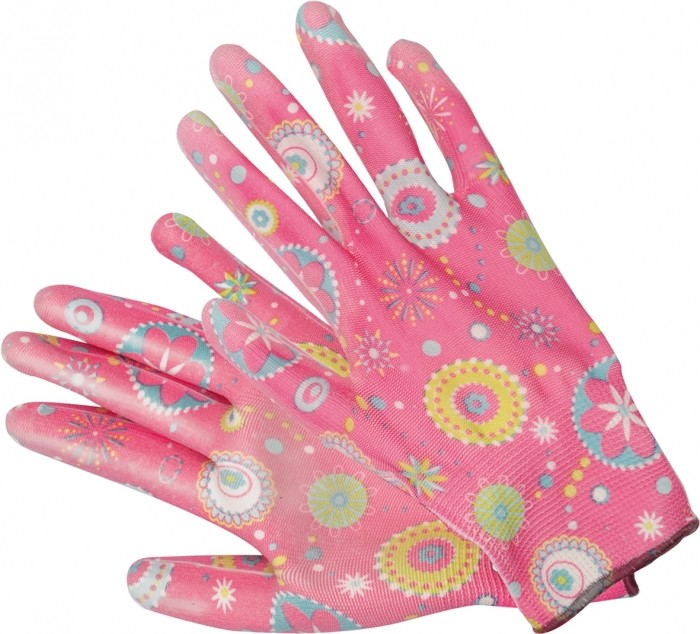 RĘKAWICE OGROD. KWIATKI - CIEMNY RÓŻ 10"