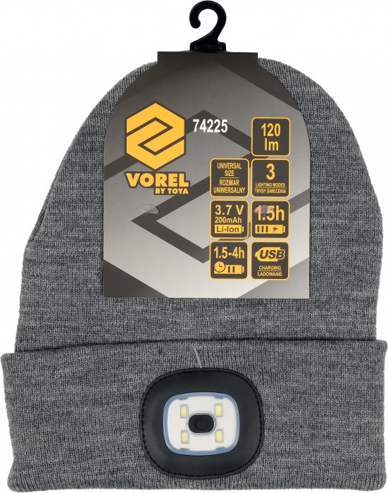 CZAPKA ZIMOWA Z LAMPKĄ LED, SZARA