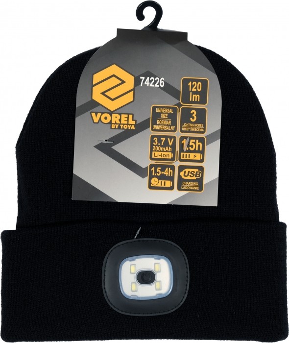 CZAPKA ZIMOWA Z LAMPKĄ LED, CZARNA -zdjęcie numer 1