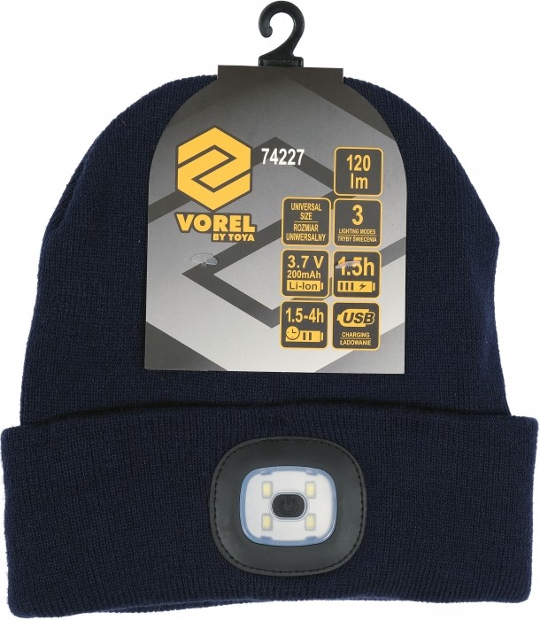 CZAPKA ZIMOWA Z LAMPKĄ LED, GRANATOWA