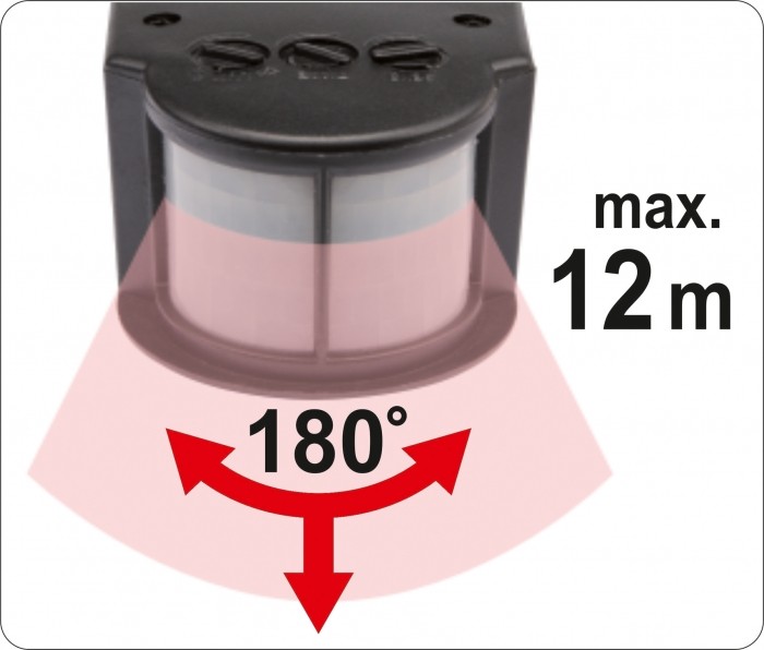 CZUJNIK RUCHU PIR IP44 CZARNY