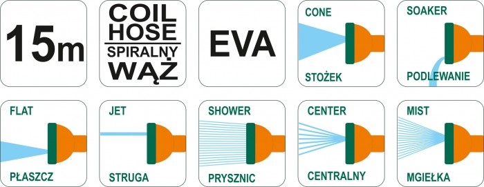 WĄŻ SPIRALNY 15M(ZŁĄCZKA + PISTOLET) FLO