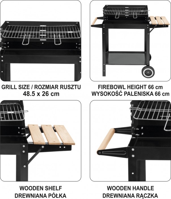 GRILL WĘGLOWY Z PÓŁKĄ, RUSZT 48,5X26CM -zdjęcie numer 2