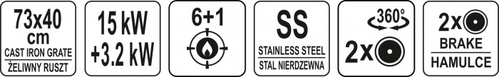 GRILL GAZOWY 6+1 STAL NIERDZEWNA 18,2KW
