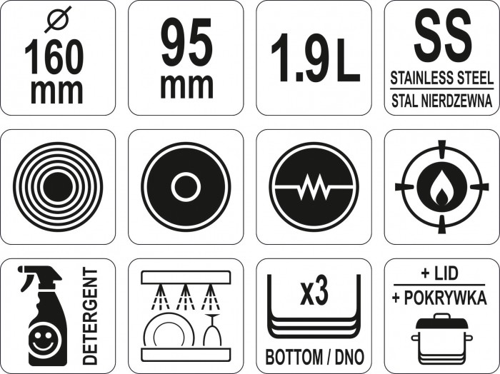 RONDEL Z POKRYWKĄ SS 16x9,5CM 1,9L