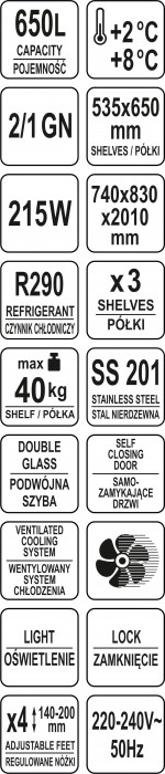 SZAFA CHŁODNICZA GN 2/1 650L PRZESZKLONA -zdjęcie numer 10
