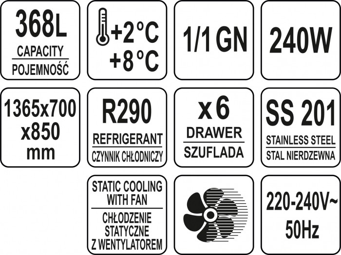 STÓŁ CHŁODNICZY 368L Z 6 SZUFLADAMI