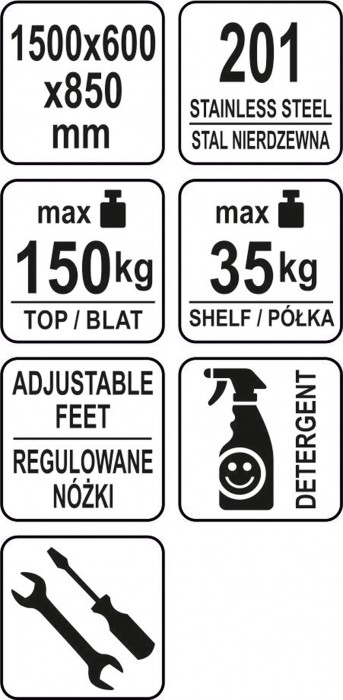 STÓŁ PRZYŚ. SKŁ. Z PÓŁ. 150×60×H85+10cm