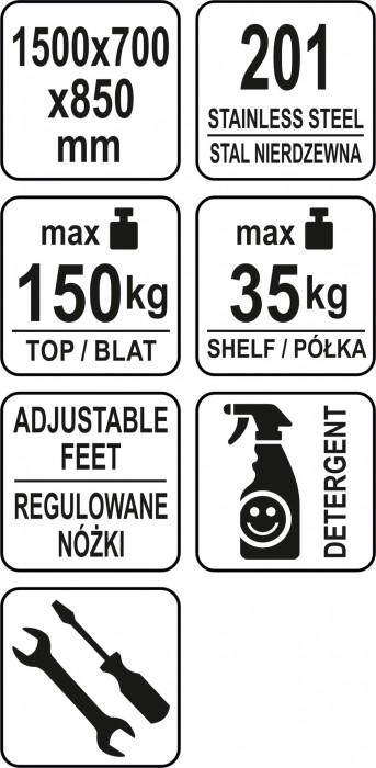 STÓŁ PRZYŚ. SKŁ. Z PÓŁ. 150×70×H85+10cm