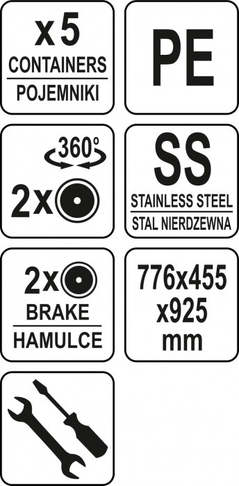 WÓZEK KELNERSKI 3-PÓŁKOWY Z 5 POJEMNIKAM