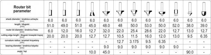 FREZY DO DREWNA TRZPIEŃ FI 6MM, 12 SZT.