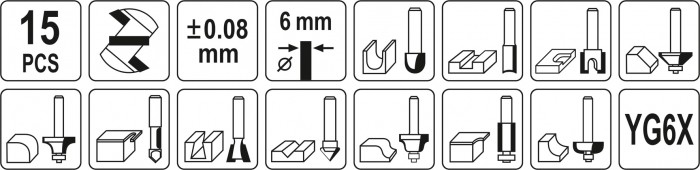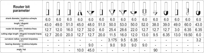 FREZY DO DREWNA TRZPIEŃ FI 6MM, 15 SZT.