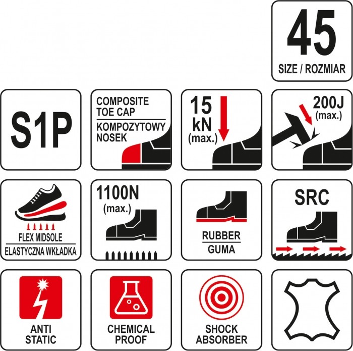PÓŁBUTY ROBOCZE PERA S1P ROZ. 45