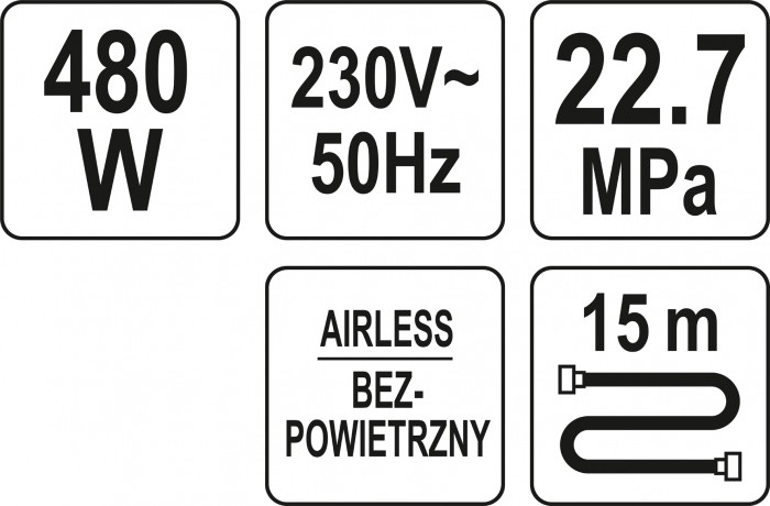 Agregat malarski hydrodynamiczny przeznaczony do malowania natrsykowego farbami lateksowymi, akrylowymi, emaliami do metalu i bejcami do drewna.