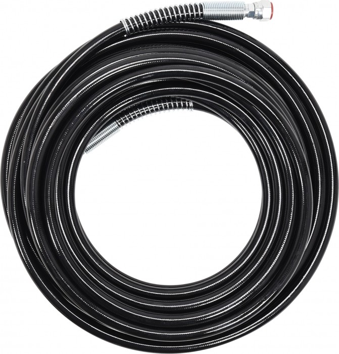 Długi wąż umożliwia ustawienie agregatu przy drabinie lub rusztowaniu bez konieczności wnoszenia wiader z farbą i maszyny na większą wysokość. Dołączona w komplecie przedłużka pozwala malować sufity i ściany w pomieszczeniach do wysokości 3,5 m bez potrzeby wchodzenia na drabinę.