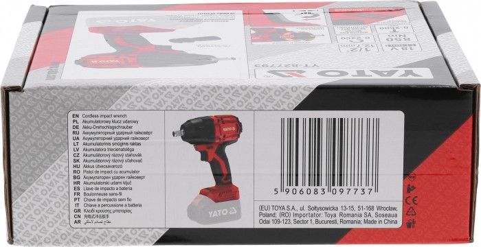 Bezszczotkowy klucz udarowy zasilany akumulatorem platformy YATO 18V. Dzięki kompaktowym rozmiarom i momencie obrotowym 850 Nm sprawdzi się zarówno w warsztacie samochodowym, jak i na budowie. Niska masa umożliwia wygodną pracę kluczem uniesionym nad głową. W zestawie z narzędziem adapter 1/2 na 1/4 cala.
