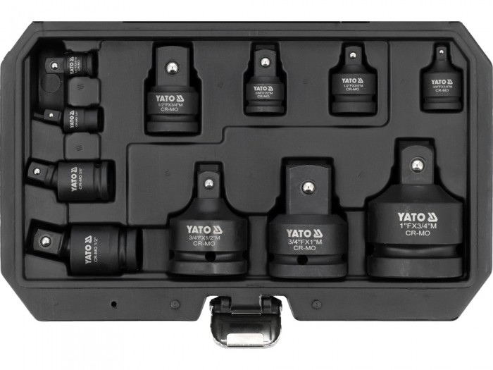 Zestaw udarowych redukcji i przegubów do stosowania w przemyśle mechanicznym, serwisach motoryzacyjnych m.in. do napraw głowic, piast, wrzecion, układów napędowych czy skrzyni biegów.