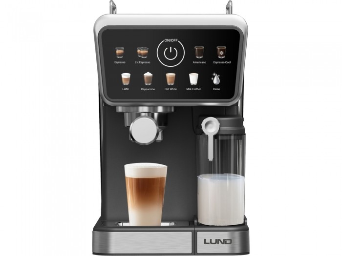 Ekspres ciśnieniowy LUND 68502 9 w 1 to wszechstronne urządzenie pozwalające cieszyć się kawą dopasowaną do nastroju i pory dnia. Umożliwia przygotowanie nie tylko klasycznego espresso czy cappuccino, ale także latte, flat white, americano, orzeźwiającego cold brew oraz napojów z automatycznie spienionym mlekiem. Dwa rodzaje kolby – do kawy mielonej oraz unikalna na rynku do kawy w kapsułkach Nespresso®, Starbucks® i UCC® – łączą swobodę wyboru i elastyczność w codziennym użytkowaniu.