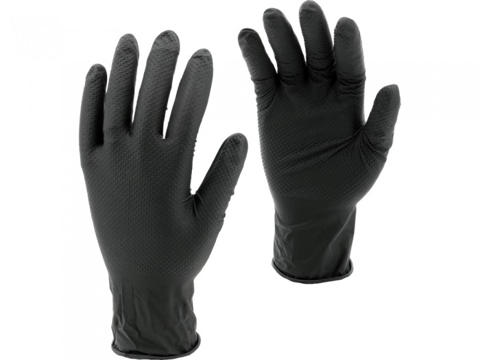 Rękawice nitrylowe z diamentową teksturą przeznaczone do prac wymagających wysokiej odporności mechanicznej i chemicznej. Wykonane z wysokiej jakości nitrylu, zapewniają skuteczną ochronę dłoni przy jednoczesnym zachowaniu dobrego czucia i precyzji ruchów. Elastyczny materiał dobrze dopasowuje się do dłoni, co przekłada się na komfort podczas dłuższego użytkowania.