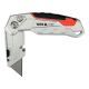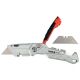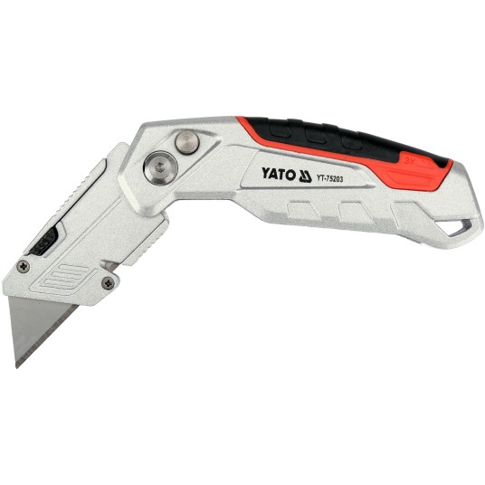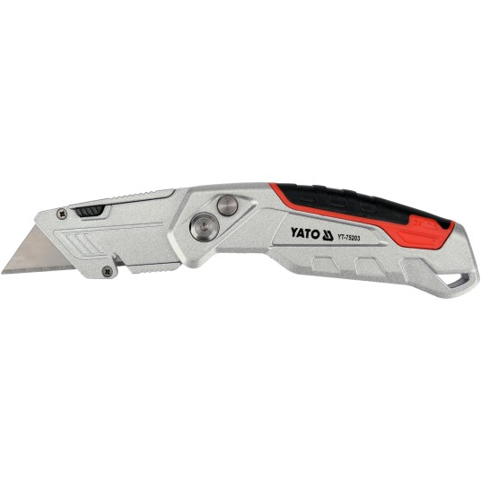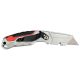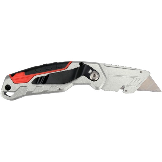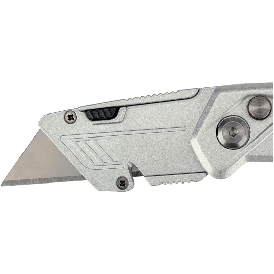 Nożyk z ostrzem trapezowym przeznaczony do intensywnych prac montażowych i magazynowych, gdzie wymagane jest mocne i stabilne ostrze. Korpus z aluminium uzupełniony elementami ABS i TPR zwiększa odporność na uszkodzenia, a jednocześnie poprawia chwyt podczas cięcia twardszych materiałów. Ostrze ze stali narzędziowej SK5 zapewnia wysoką trwałość i powtarzalną jakość cięcia.