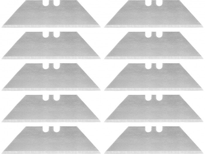 Zapasowe ostrza trapezowe do noży technicznych stosowanych w pracach montażowych, magazynowych i budowlanych. Wykonane ze stali narzędziowej SK5, gwarantują powtarzalną ostrość oraz równą krawędź cięcia bez szarpania przy pracy z materiałami opakowaniowymi i tworzywami.