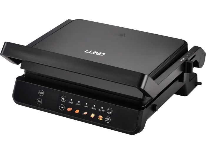 Nowoczesny grill elektryczny LUND 67440 pozwala przygotować mięso, ryby, warzywa oraz pieczywo bez konieczności używania węgla czy gazu. Urządzenie szybko się nagrzewa, utrzymuje stabilną temperaturę i zapewnia równomierne opiekanie na całej powierzchni płyt.